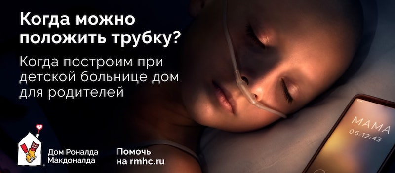 Благотворительный Фонд «Дом Роналда Макдоналда» реализует кампанию «Когда можно положить трубку?», которая помогает осветить проблему разлучения родителей с детьми, проходящими длительное лечение в больницах. Многолетний опыт, накопленный Фондом в этом направлении, может помочь решить эту проблему во всех регионах России.